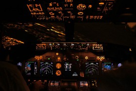Zatáčka nad Ostravou před usazením do osy dráhy 22 při nočním příletu z Řecka.