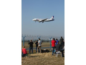 14.03. Díky krásnému počasí se fandové čekající na korejskou A380 scházeli už od dopoledne a nebývalé publikum si tak mohly vychutnávat i jiné společnosti.