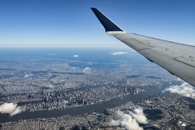 Pohled na New York při letu z White Plains do Atlanty.