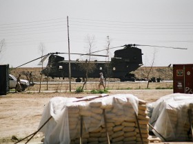 Chinook at British military camp Abu Nadji, Missan province, southern Iraq